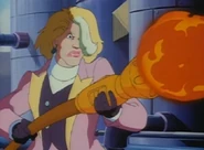 The Planeteers wake up just in time for Captain Planet to dive on them and shield them from the spray from Blight's hose. MAL causes sparks that turn the toxic waste into flames. Captain Planet leads Blight's attention away from the Planeteers, running and jumping around the power plant.